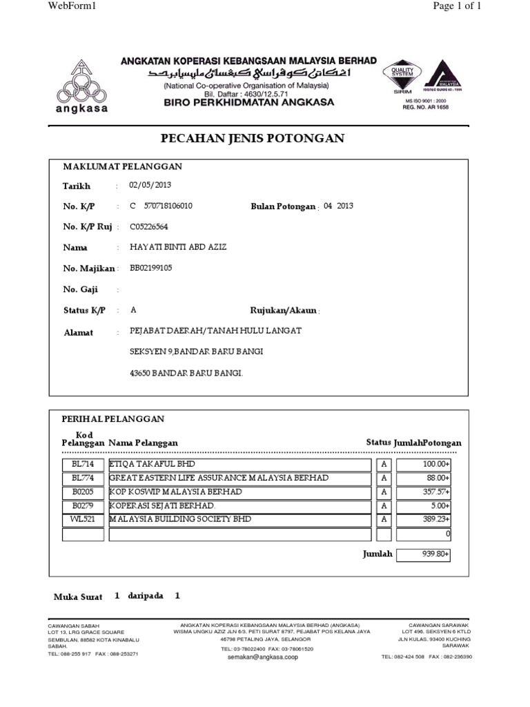 Pecahan Jenis Potongan Maklumat Pelanggan Tarikh Pdf